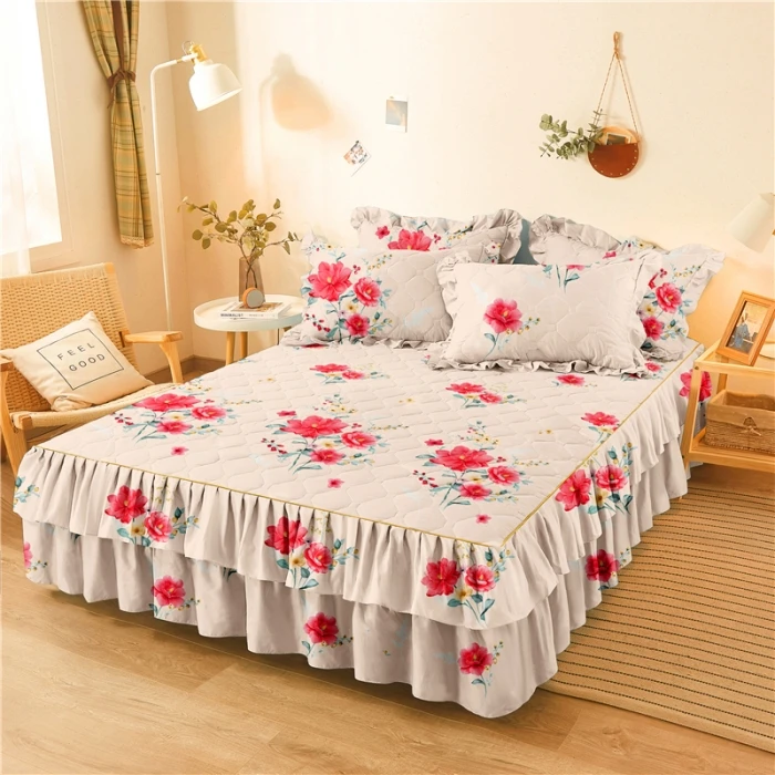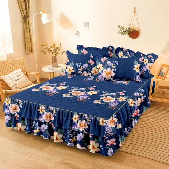 Double Layer Bedspread Floral Printed Bed Sheet Bilateral Full Queen king Size Pillowcase Bedsheets Bed Skirts Set